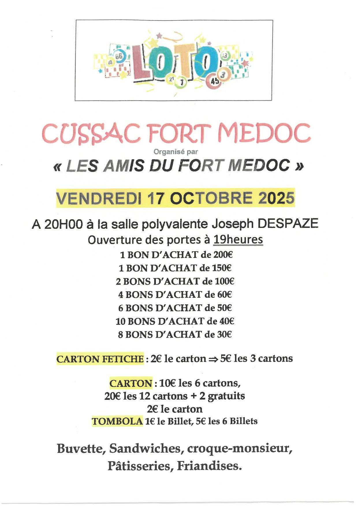LOTO DE L’ASSOCIATION « LES AMIS DU FORT MÉDOC »