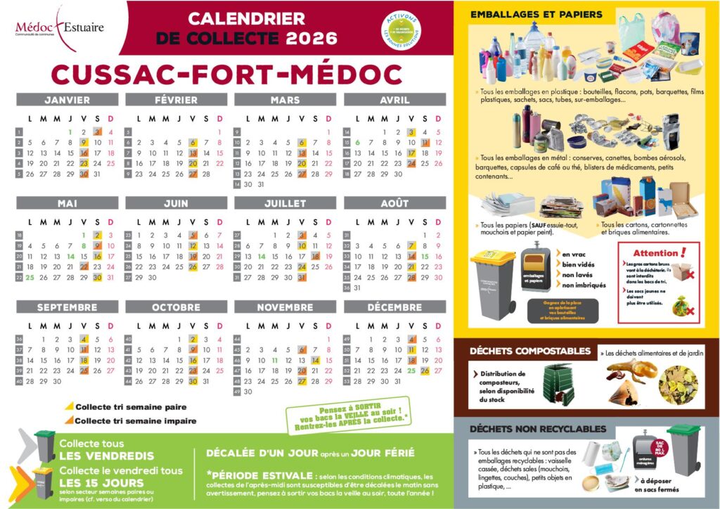 La collecte a lieu le vendredi pour la commune de Cussac-Fort-Médoc.