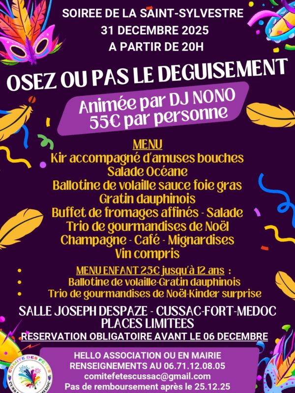 Le Comité des fêtes de Cussac-Fort-Médoc organise le réveillon du 31 décembre à la salle Joseph Despaze.