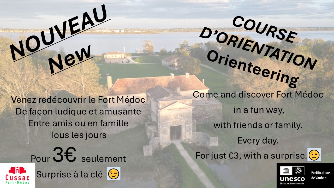 Le groupe peut compléter la visite avec un jeu de piste « Es-tu Fort Médoc » (5-12 ans) et / ou une course d’orientation déclinée en différents niveaux de difficulté (à partir de 7 ans).